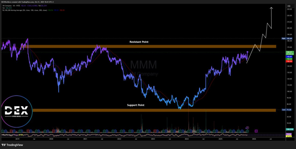 Analysts remain optimistic about the future of MMM shares, giving them a moderate buy rating. They forecast an average price of $159.83, which is a 1.66% downside based on the most recent price. The analysts forecast a high of $190 and a low of $120 for the stock.